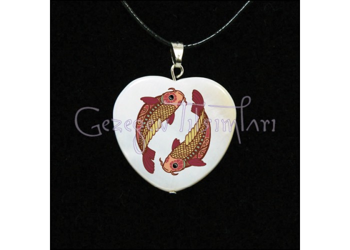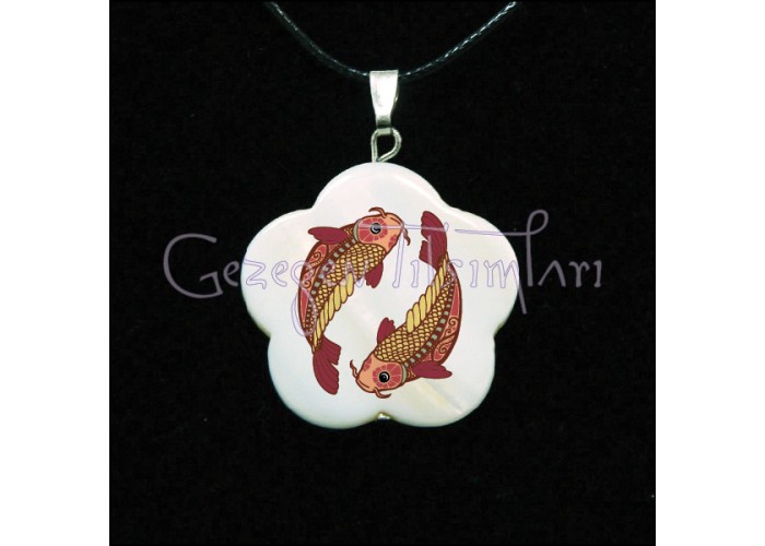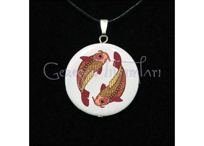 Sedef üstüne baskılı Balık burcu kolye ucu