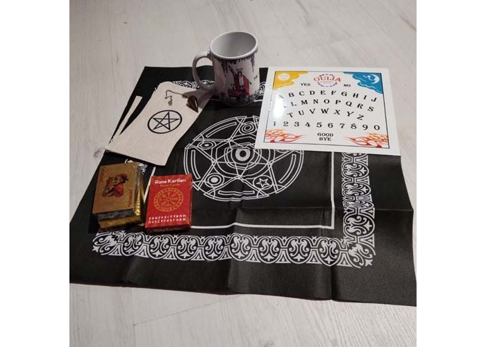 Beyaz metal üstüne baskılı ouija tahtası (Opsiyonlu olarak Ouija tahtaları sayfasındaki altın rengi ya da gümüş rengi olan modeli de seçebilirsiniz.)